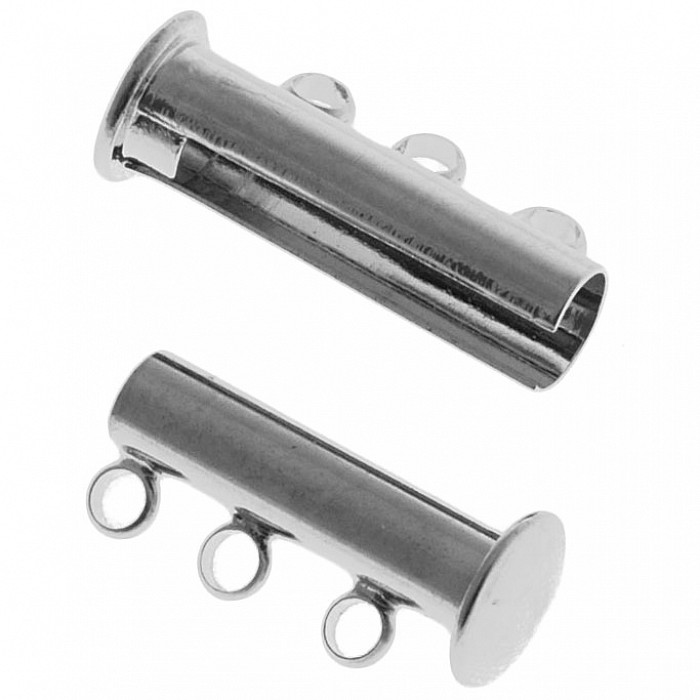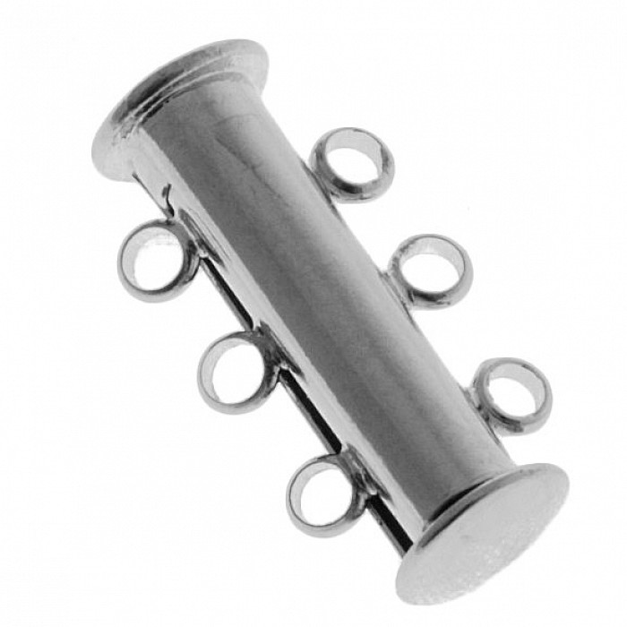 Magnetické zapínání se 3 očky na třířadý nebo širší náramek či náhrdelník. Obě části zapínání se do sebe zasunou a magnet vložený v jedné je pak drží pevně spolu.