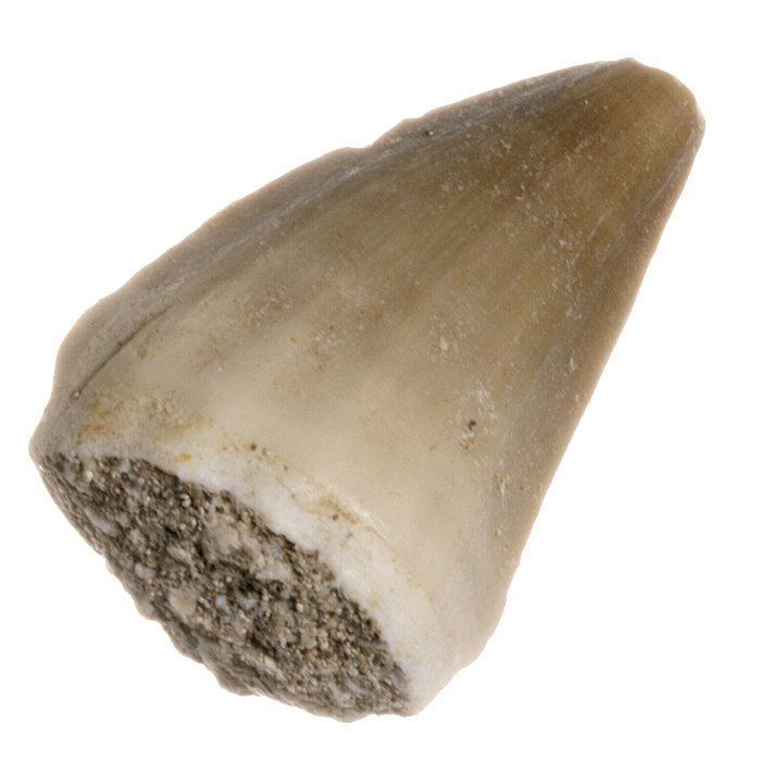 Zkamenělý zub z mosasaura, pravěkého dravého mořského ještěra, stáří cca 90 milionů let.