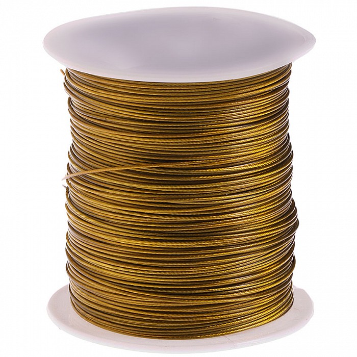 Ocelové návlekové lanko s nylonovou povrchovou úpravou v zemitém odstínu.