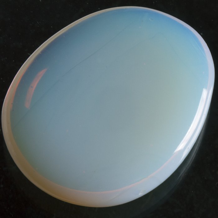 Opalitová leštěná placička. Použití na výrobu kamenné bižuterie nabo jako hmatka. Syntetický minerál.