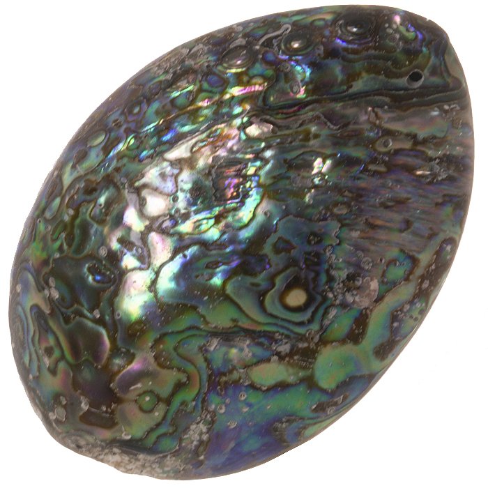 Očištěná a vyleštěná mušle je slepená napevno a provrtaná 4 mm od horního okraje.