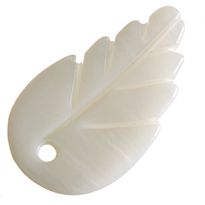 Vyřezávaný lístek z bílé říční perleti.