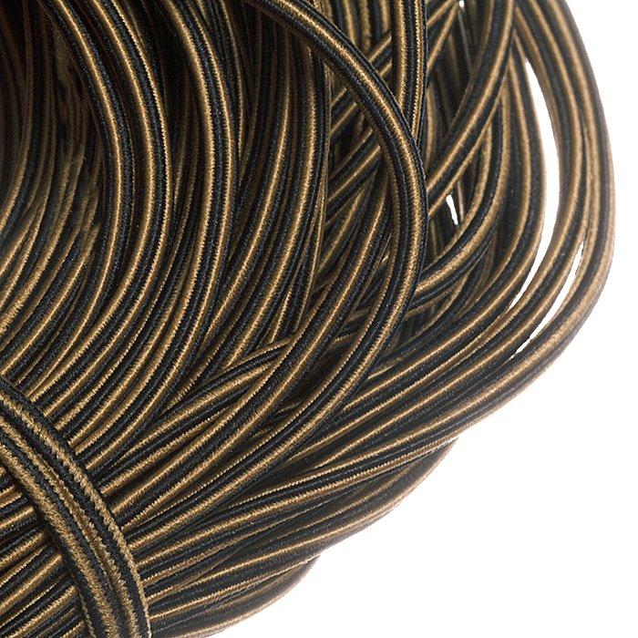 Čtyři jádra pruženky tvoří pryž, která je obetkaná polyamidovým vláknem s elastanem ve střídavých barvách žlutá- černá.