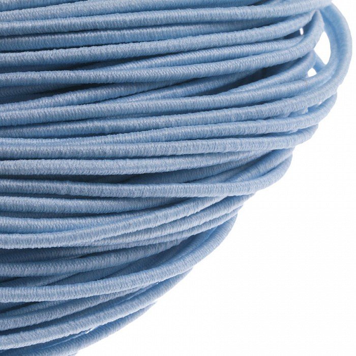 Kulatá pruženka světle modrá o průměru 2 milimetry.