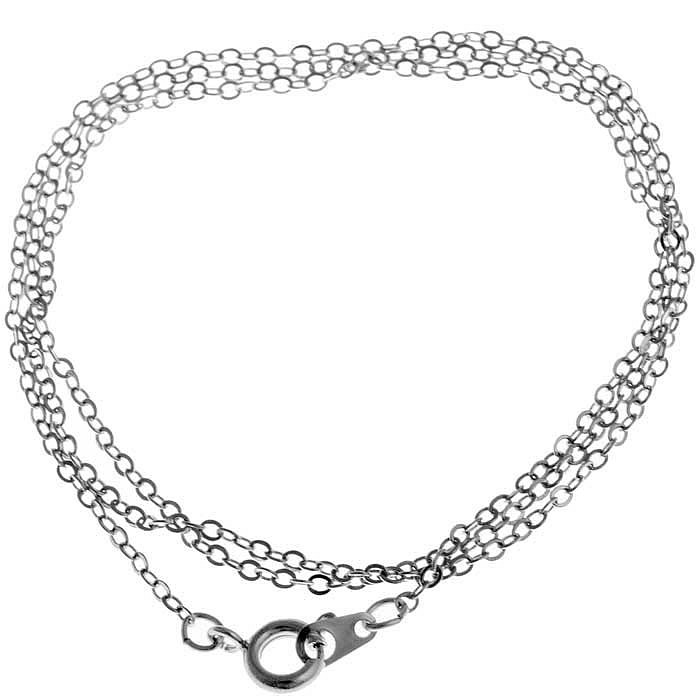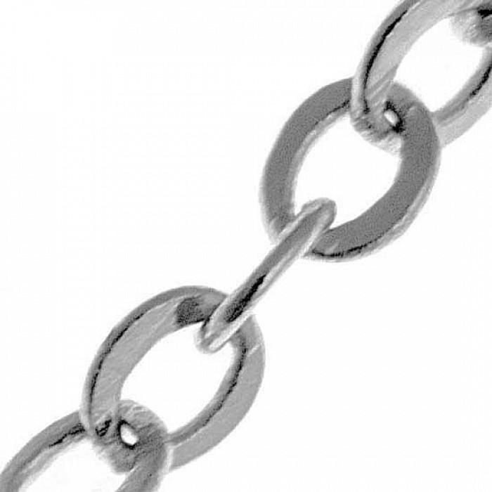 Jemný řetízek s oválným očkem z plochých drátků platinové barvy, dlouhý 46 cm a ukončený kroužkovým zápínáním. Bez obsahu niklu.