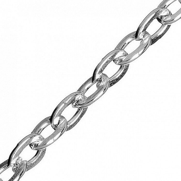 Oválný řetízek platinové barvy s plochým očkem.