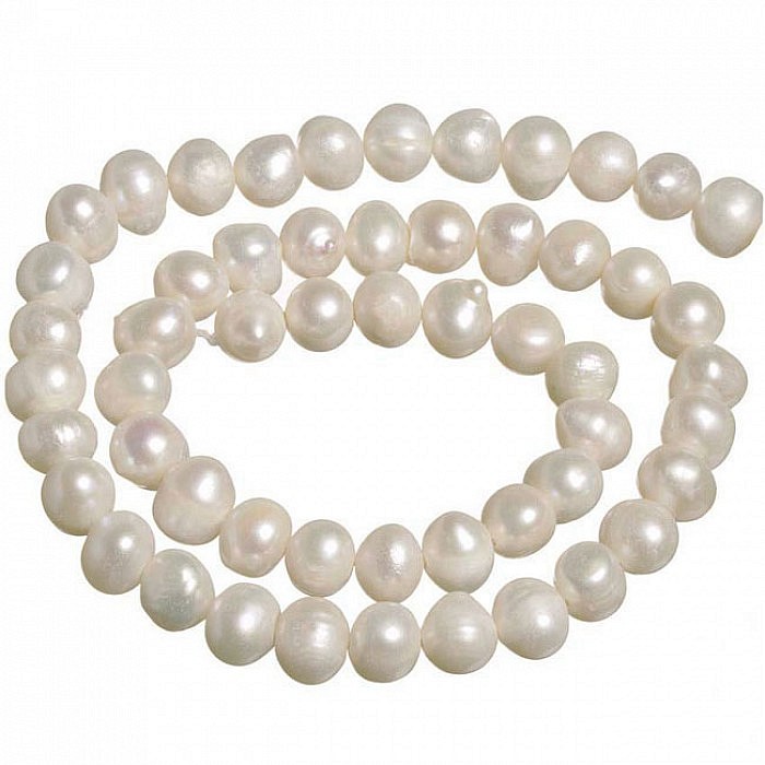 Perly mají typický jemný irizující lesk, jsou kulatější nepravidelné a vrtané z boku.