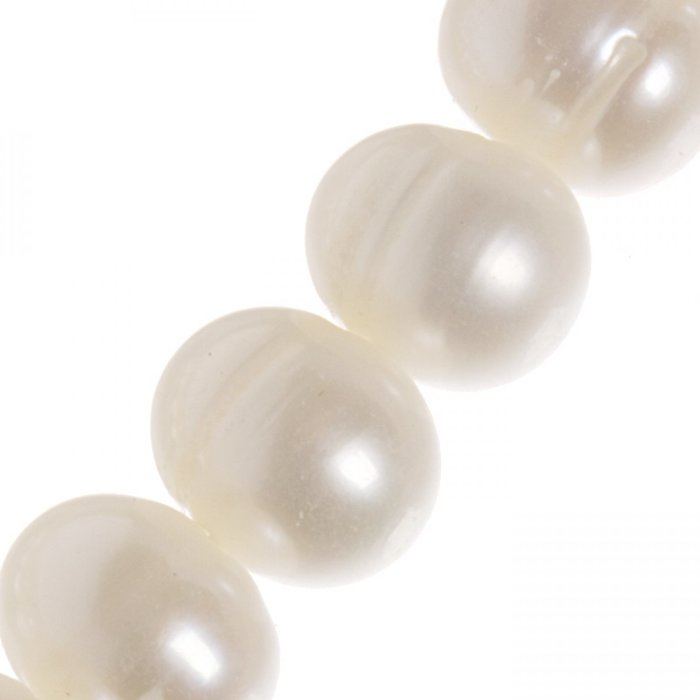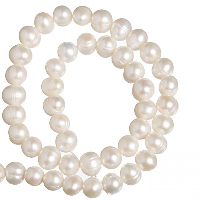 Perly mají typický jemný irizující lesk, jsou oblejší, nepravidelné a vrtané z boku.