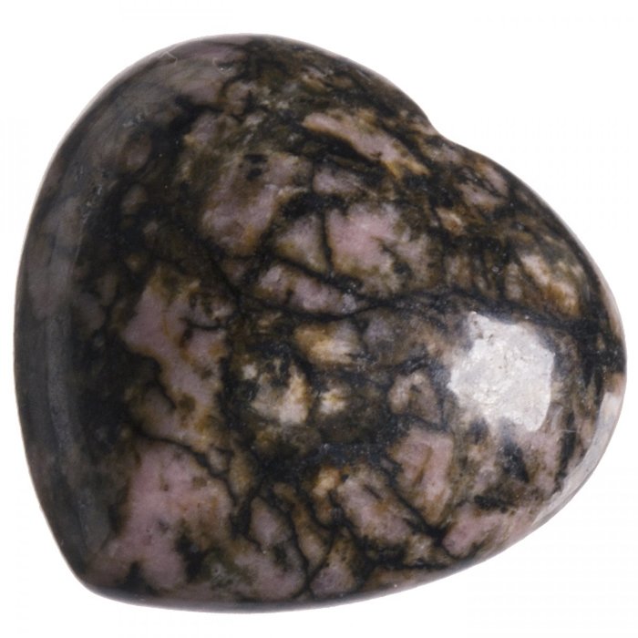 Kamenné srdce  z rodonitu  o rozměrech 25x25x14 mm.