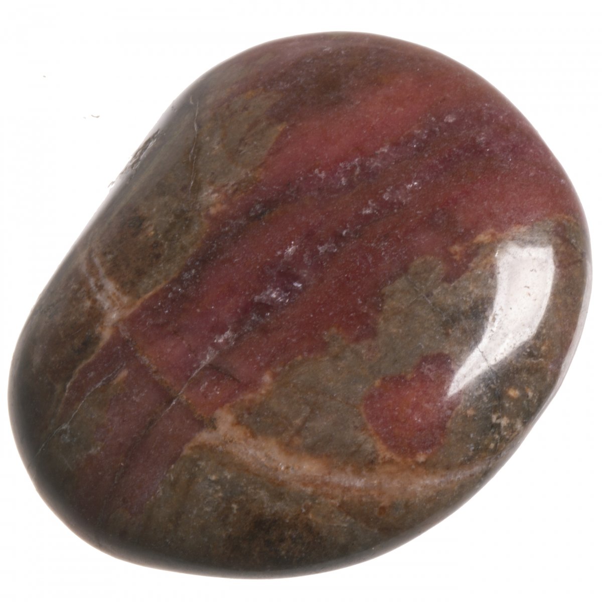 Tromlovaná placička rodonitu pro použití do šperku, bižuterie nebo jako hmatka.