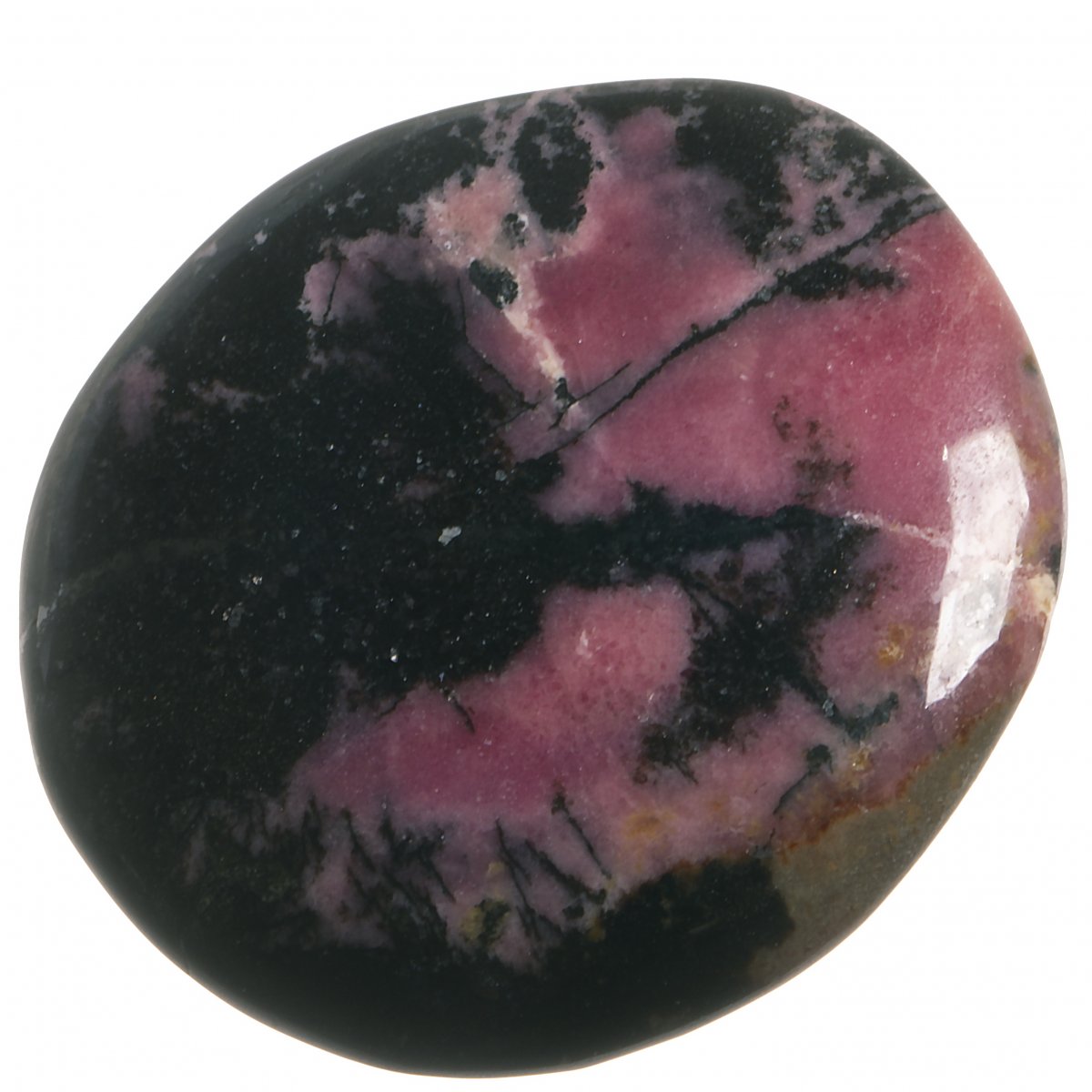 Tromlovaná placička rodonitu pro použití do šperku, bižuterie nebo jako hmatka.