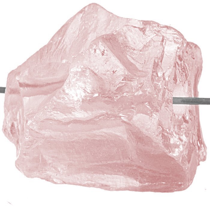 Vrtaný kamínek surového růženínu.