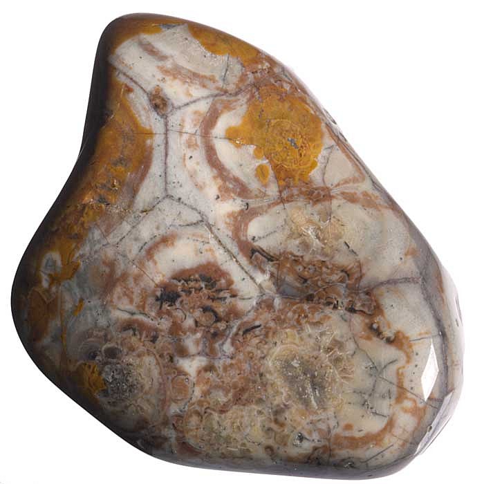 Tromlovaný leštěný kamínek ryolitu vhodný do šperku, na kreativní tvorbu kamenné bižuterie nebo do sbírky.