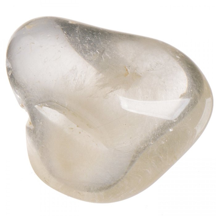 Sagenitový tromlovaný kamínek. (Křišťál s rutilem).