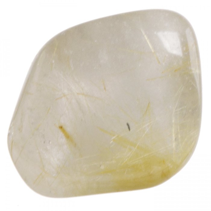 Sagenit tromlovaný (křišťál s rutilem). Nepravidelný leštěný kamínek na tvorbu kamenné bižuterie.