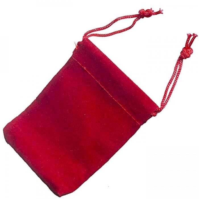 Dárkový sametový sáček červené barvy na drobné předměty jako jsou například šperky a bižuterie .
