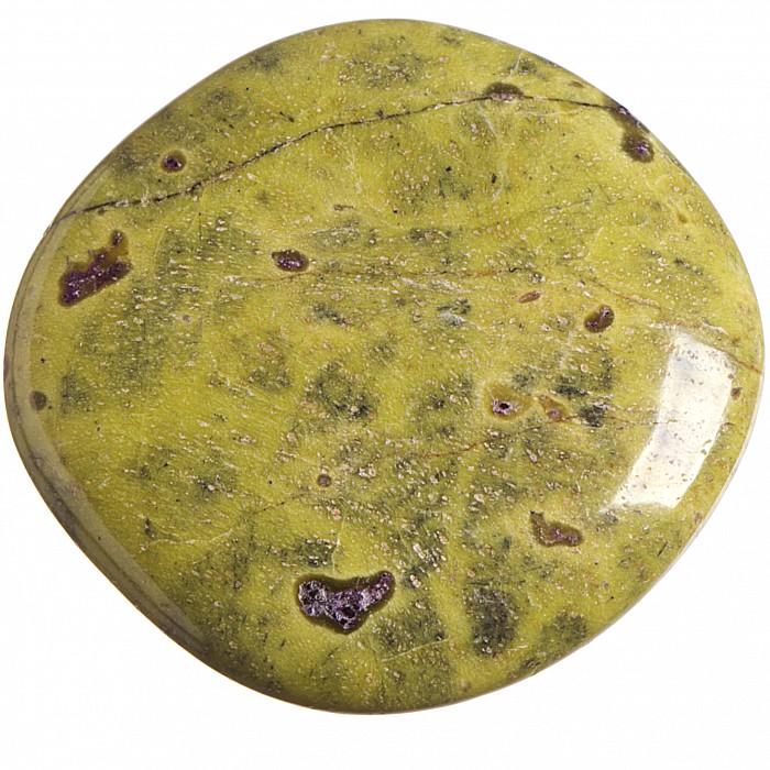Tromlovaná placička ze serpentinu s krystaly stichtitu.