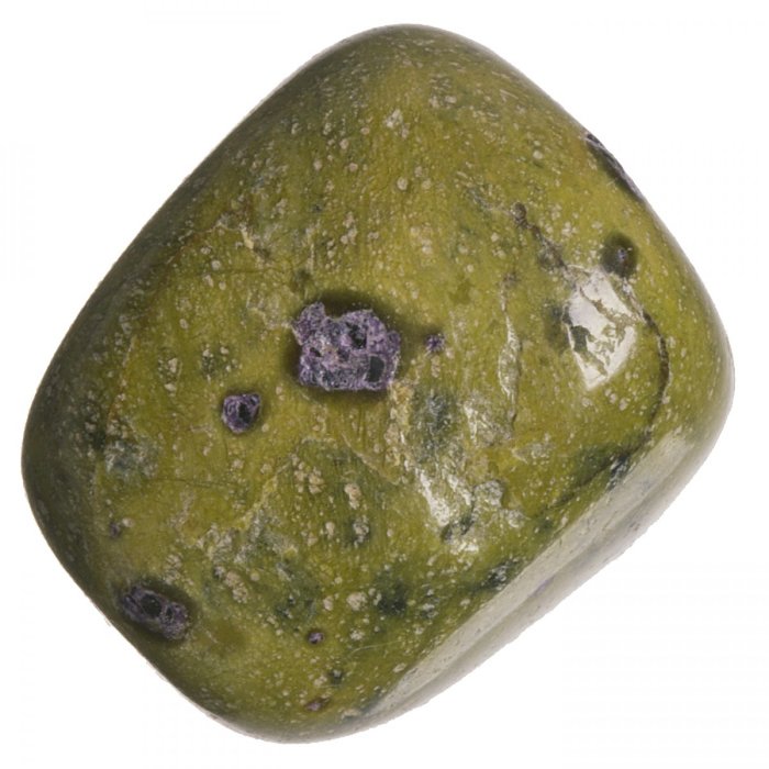 Tromlovaný valounek serpentinu s drobnými vrostlicemi stichtitu vhodný do šperku nebo do sbírky.