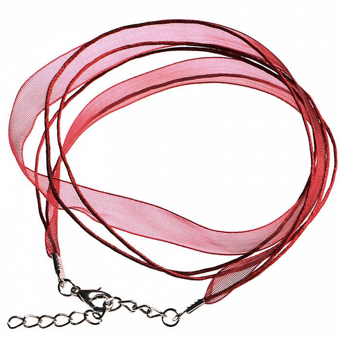 Návlek je dlouhý 45 cm+5 cm prodlužující řetízek a je tvořen ze 2 voskovaných šňůrek a jedné šifonové stuhy široké 7 mm.