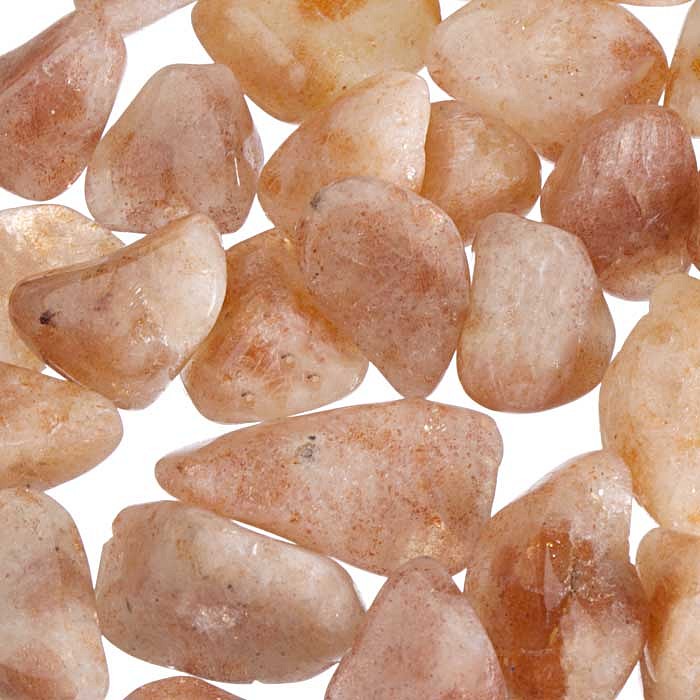 Tromlované drobné kamínky slunečního kamene na výrobu kamenné bižuterie. Mírně nepravidelné, přírodní minerál.