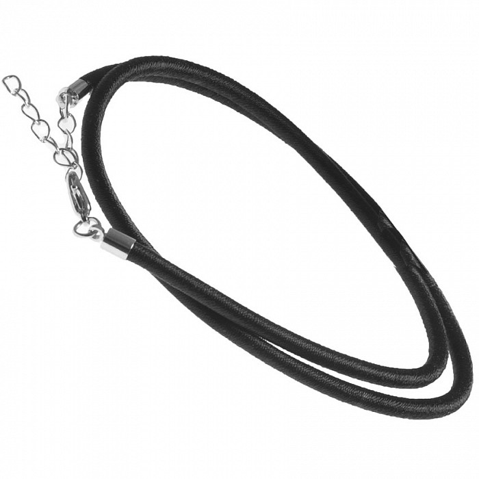 Hedvábná šňůrka 47cm dlouhá s prodloužením 5cm a se zapínáním v platinové barvě, černá.