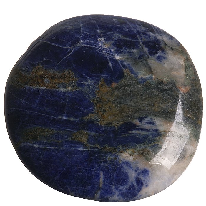 Tromlovaná placička sodalitu na tvorbu kamenné bižuterie nebo jako hmatka.
