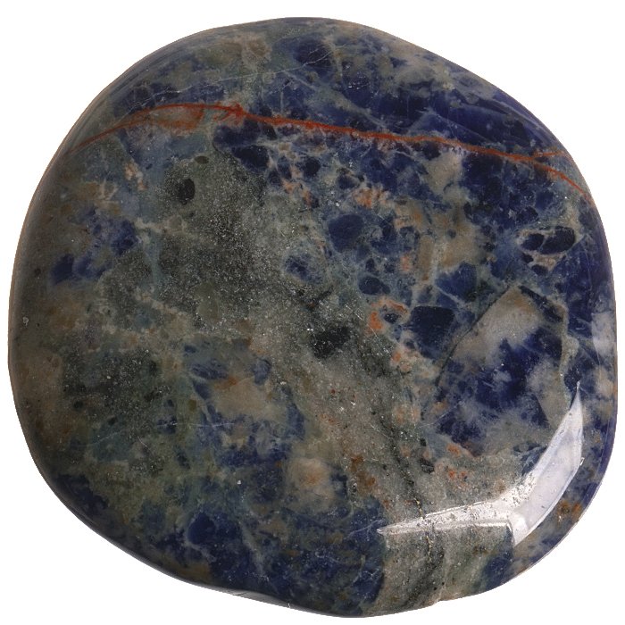 Tromlovaná placička sodalitu na tvorbu kamenné bižuterie nebo jako hmatka.
