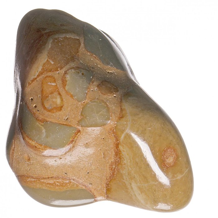 Tromlovaný kamínek z brekciového jaspisu (sopečná brekcie).