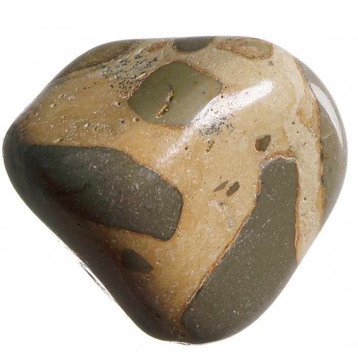 Tromlovaný kamínek z brekciového jaspisu (sopečná brekcie).
