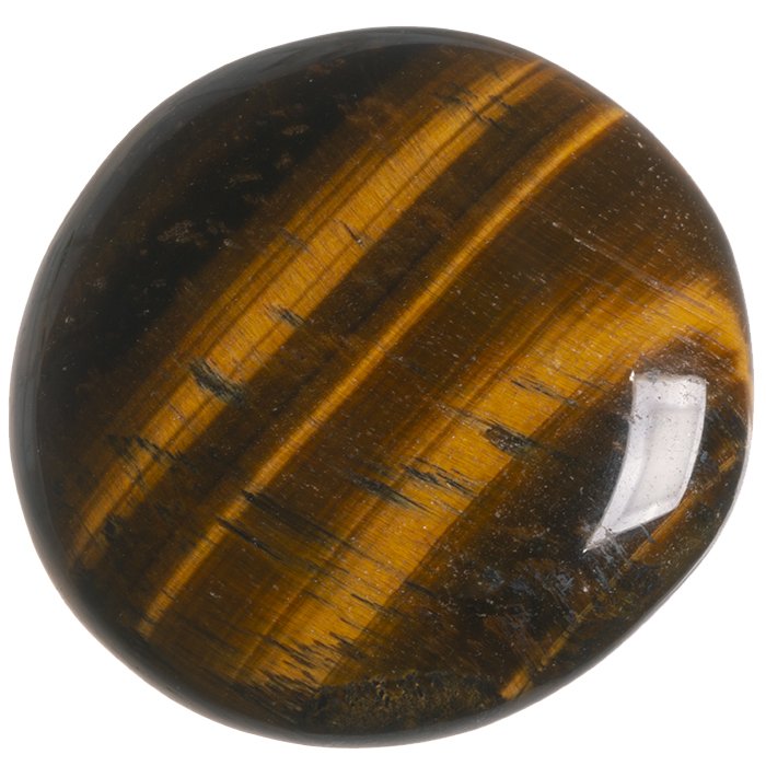 Tygří oko, tromlovaná placička na tvorbu kamenné bižuterie, jako hmatka nebo jako vzorek do sbírky minerálů.