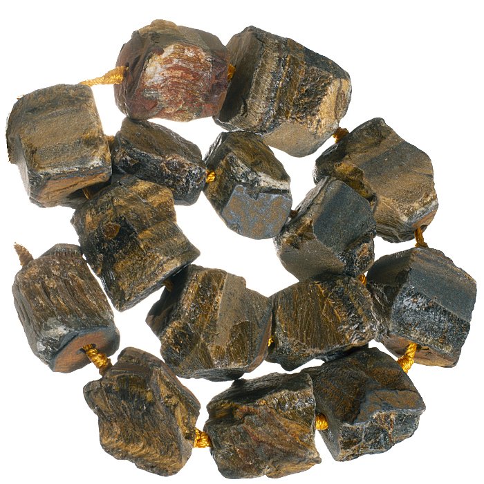 Vrtané kamínky surového tygřího oka na šňůře.
