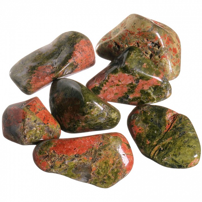 Tromlovaný kamínek unakitu na výrobu kamenné bižuterie, šperků nebo do sbírky.