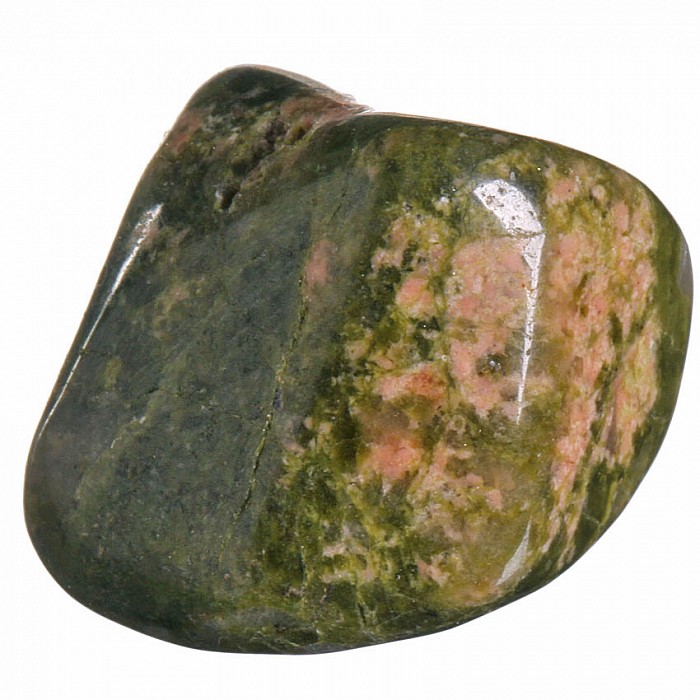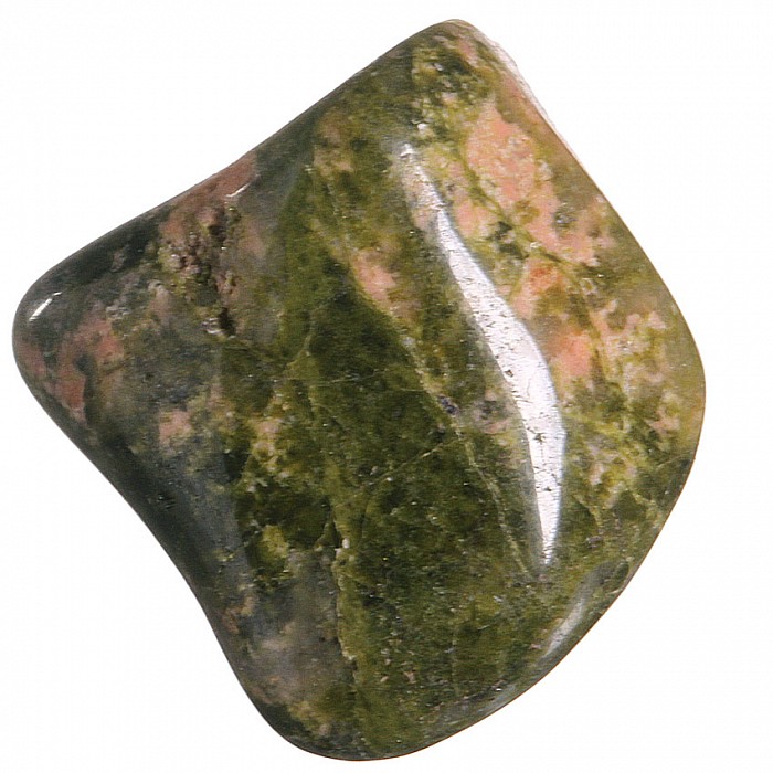 Tromlovaný kamínek unakitu na výrobu kamenné bižuterie, šperků nebo do sbírky.