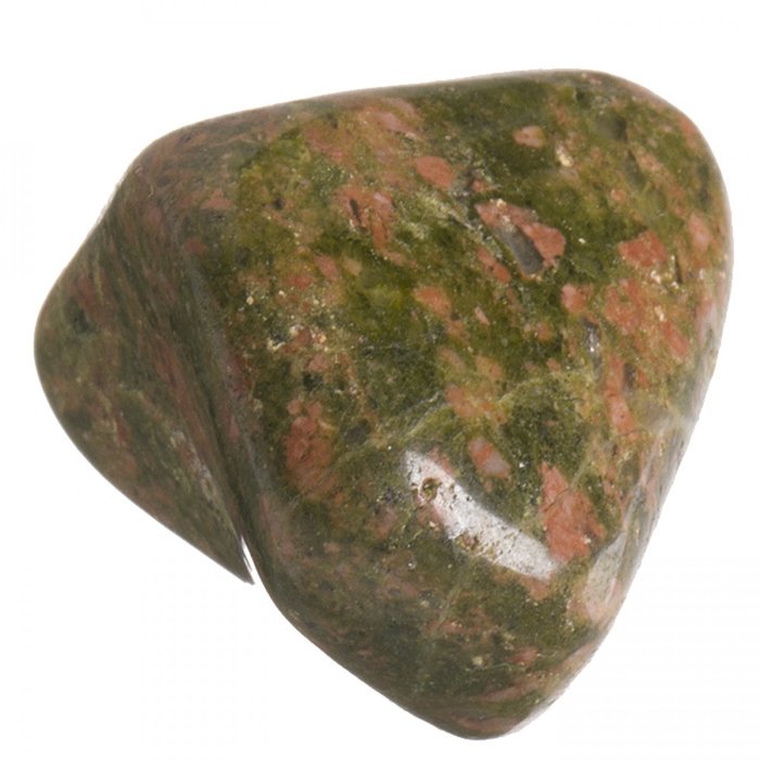 Tromlovaný kamínek unakitu na výrobu kamenné bižuterie, šperků nebo do sbírky.