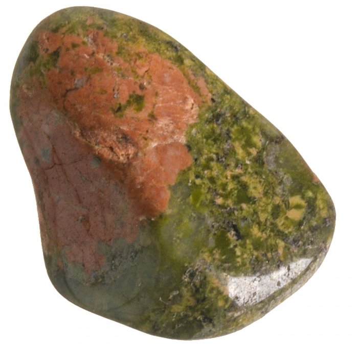 Tromlovaný kamínek unakitu na výrobu kamenné bižuterie, šperků nebo do sbírky.
