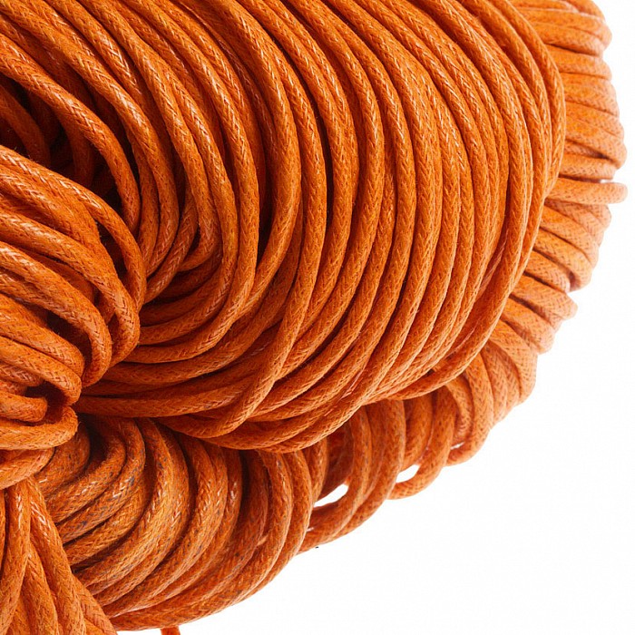 Oranžová šňůrka bavlněná, voskovaná, 2 mm silná. Návlekový materiál na výrobu bižuterie. Přírodní materiál, tlumené barvy a rustikální vzhled.